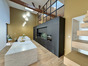 Dès l'entrée, les matériaux nobles et la lumière traversante sublime un espace de vie de 110 m2 réunissant séjour, salon chaleureux et cuisine sur mesure entièrement équipée. Les pièces de vie bénéficient d'une hauteur sous plafond allant jusqu'à 7m.